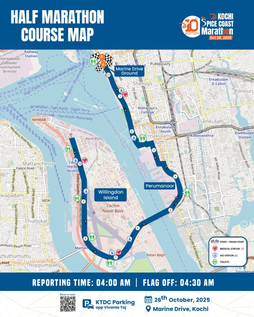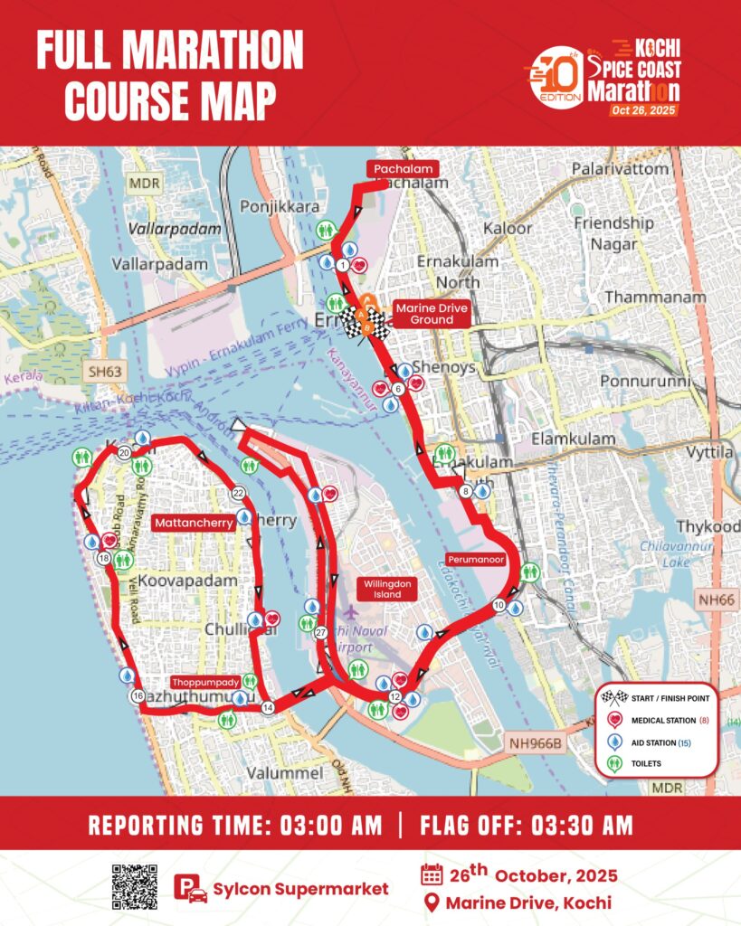 Run along Kerala’s breathtaking spice-scented coastline! The Spice Coast Marathon offers three exciting categories — a Full Marathon (42.2 km) for seasoned runners, a Half Marathon (21.1 km) for passionate challengers, and a 5 km Fun Run for everyone who wants to be part of the celebration. Each route showcases stunning backwaters, lush greenery, and the vibrant spirit of Kerala.